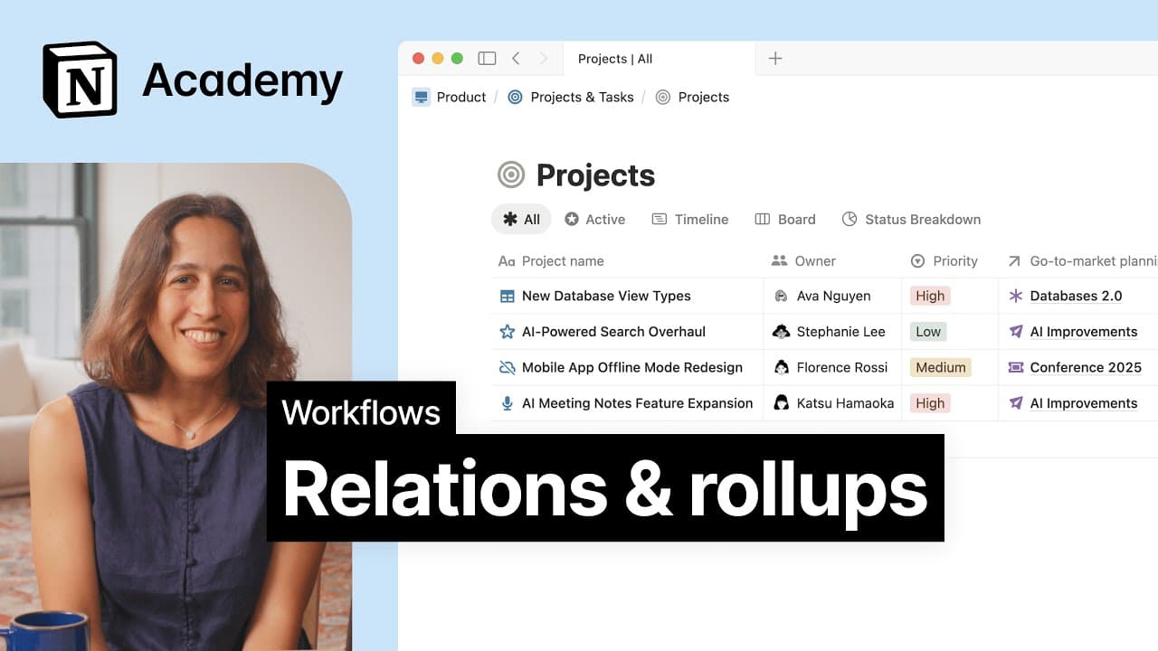 Database properties add all kinds of context to your database items, like due dates, task owners, relevant URLs, last edited timestamps, and more. Use these properties to filter, sort, and search your data 🧩