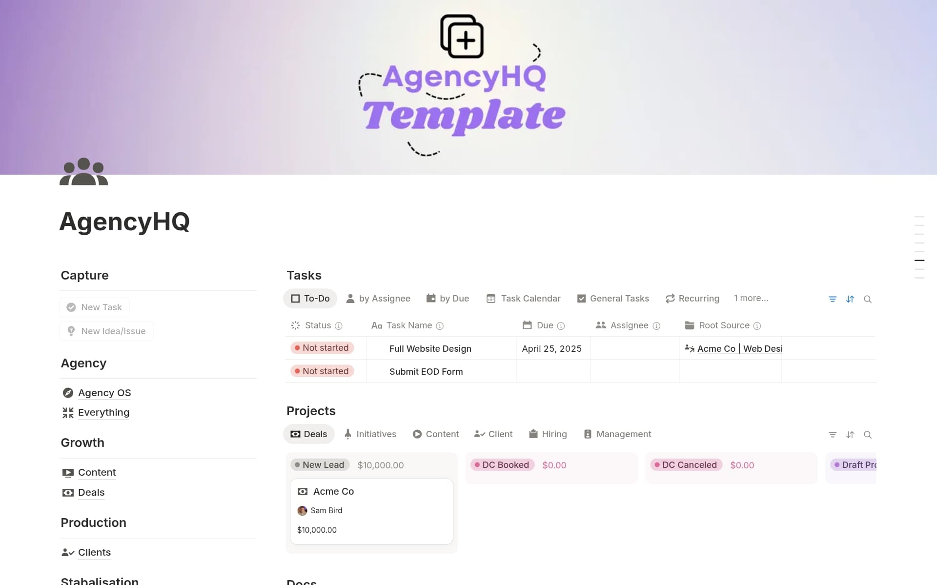 A template preview for